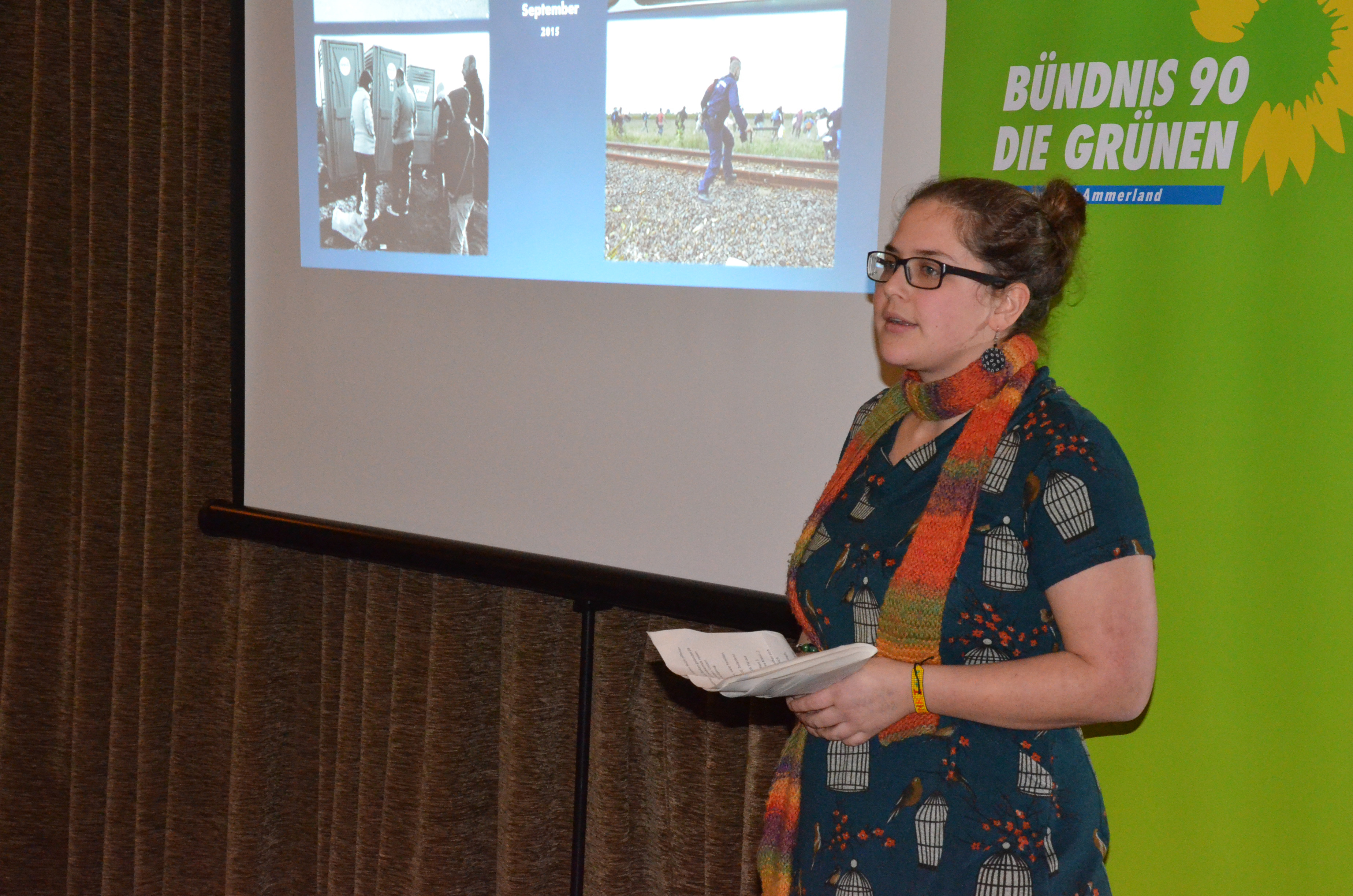 Die Ammerländer GRÜNEN hatten mit meiner Tochter Wiebke und mit Karsten Klebert zwei Menschen in Heinemanns Gasthaus in Westerstede-Hollwege eingeladen, die im Laufe des letzten Jahres den Geflüchteten entgegen gefahren waren, um ihnen unterwegs zu helfen.