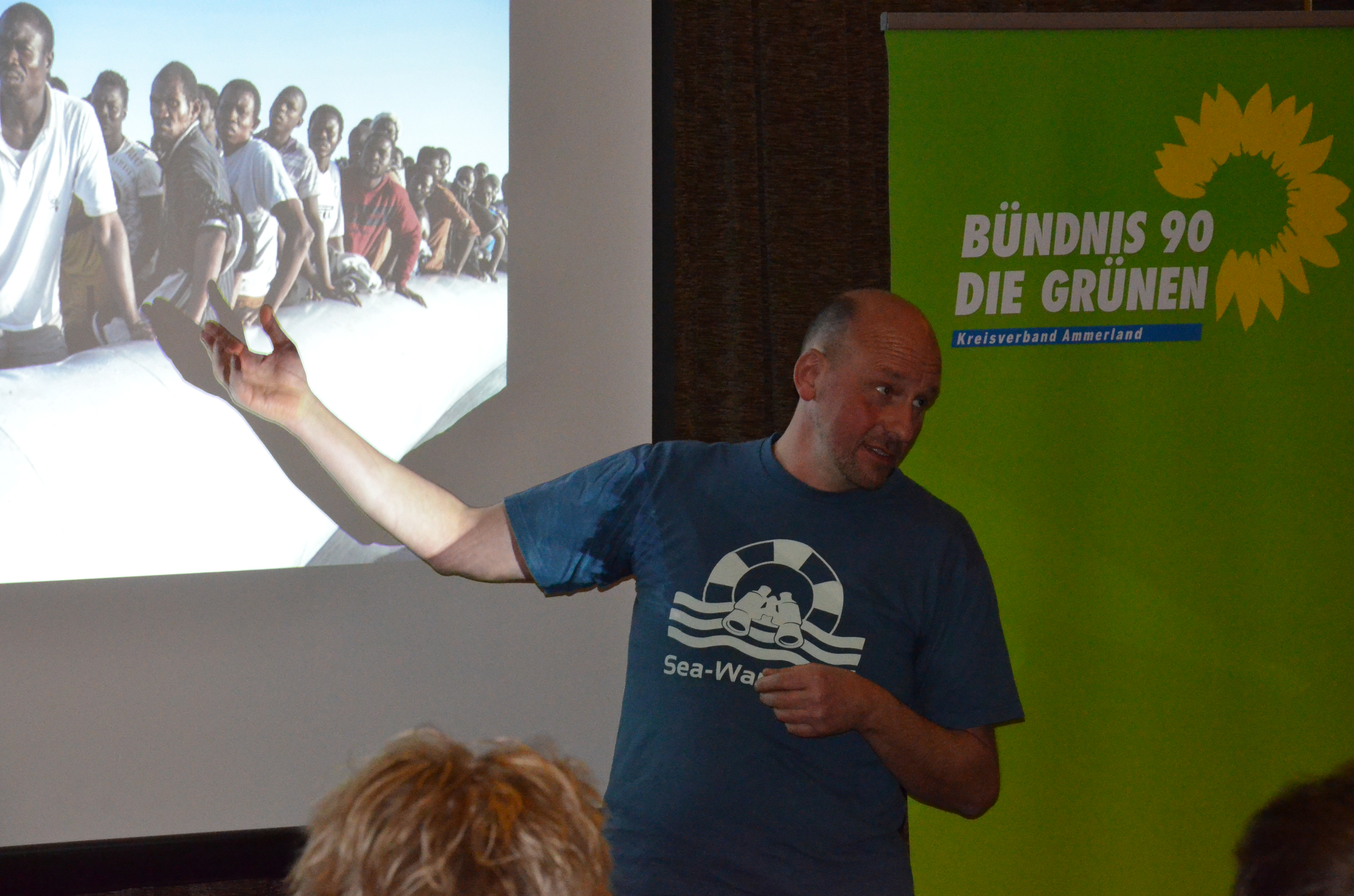 Karsten Klebert, Intensivpfleger und stellvertretender Schulleiter des Ammerländer Ausbildungszentrums für Gesundheitsberufe, war im Jahr 2015 zweimal mit der Organisation Sea-Watch unterwegs, einer privaten Initiative zur Seenotrettung im Mittelmeer, die Flüchtlinge vor dem Ertrinken bewahrt und medizinische Ersthilfe leistet. Seinen ersten Einsatz verbrachte er auf einem Schiff, das zwischen Lampedusa und der libyischen Küste kreuzte: „Wir haben in den paar Tagen, die wir dort unterwegs waren, zwei Schlauchboote mit jeweils etwa 100 Männern, Frauen und Kindern gesichert.“, erzählte Karsten Klebert. „Die Arbeit dort funktioniert nur deshalb, weil die verschiedenen Organisationen gut vernetzt zusammenarbeiten.“